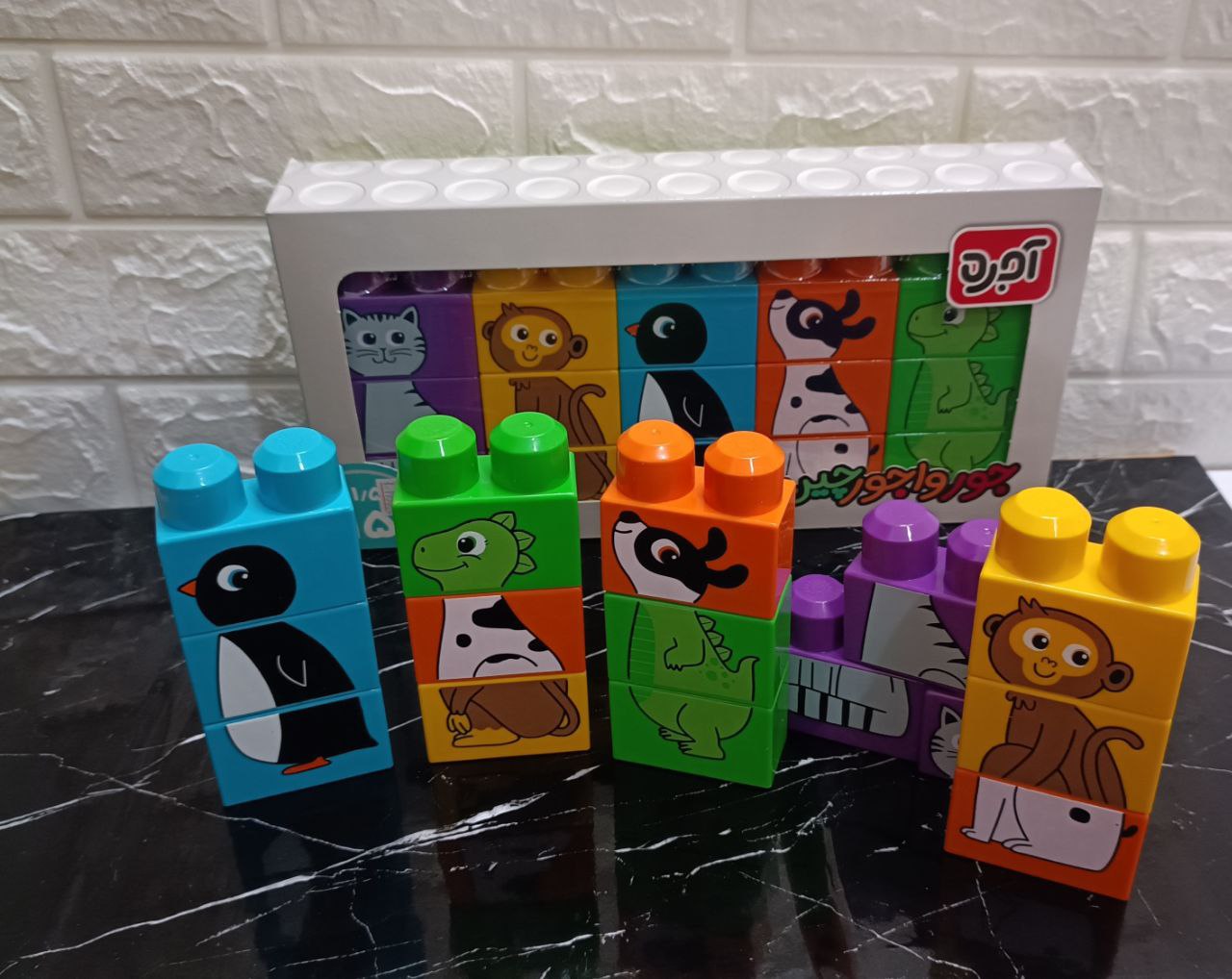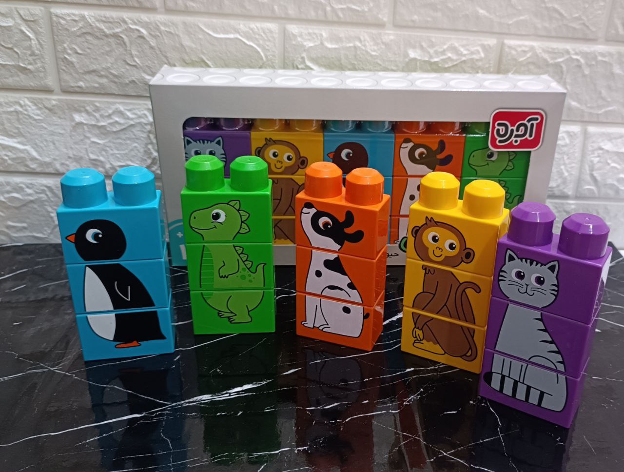 2. انتخاب تصویر: یک تصویر از آجرها انتخاب کنید. کودکان میتوانند این آجر ها شکل حیوانات را یاد بگیرند